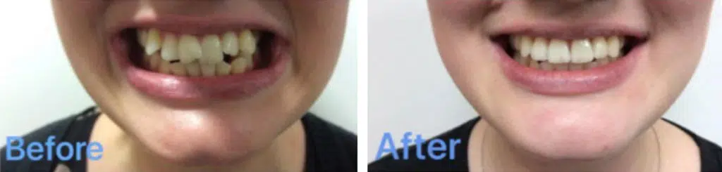 This is where you don’t have enough room in your jaw to accommodate all your teeth. So your teeth bunch up, overlap and twist, sometimes getting pushed to the front or the back.